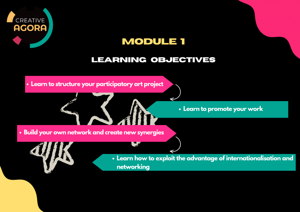 Module 1 serves as an introduction to the internationalization of your participatory arts practice through tools to adapt your work, to structure your project, to build and nourish your professional network and to carry out workshops in an intercultural environment.